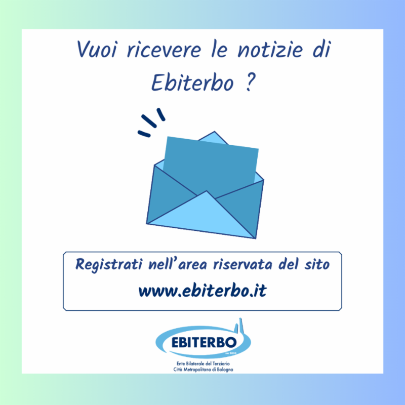 Per ricevere la newsletter di Ebiterbo, al fine di essere sempre aggiornato sulle novità e sui servizi che l'Ente mette a disposizione dei propri aderenti, è necessario registrarsi nell'area riservata del nostro sito.